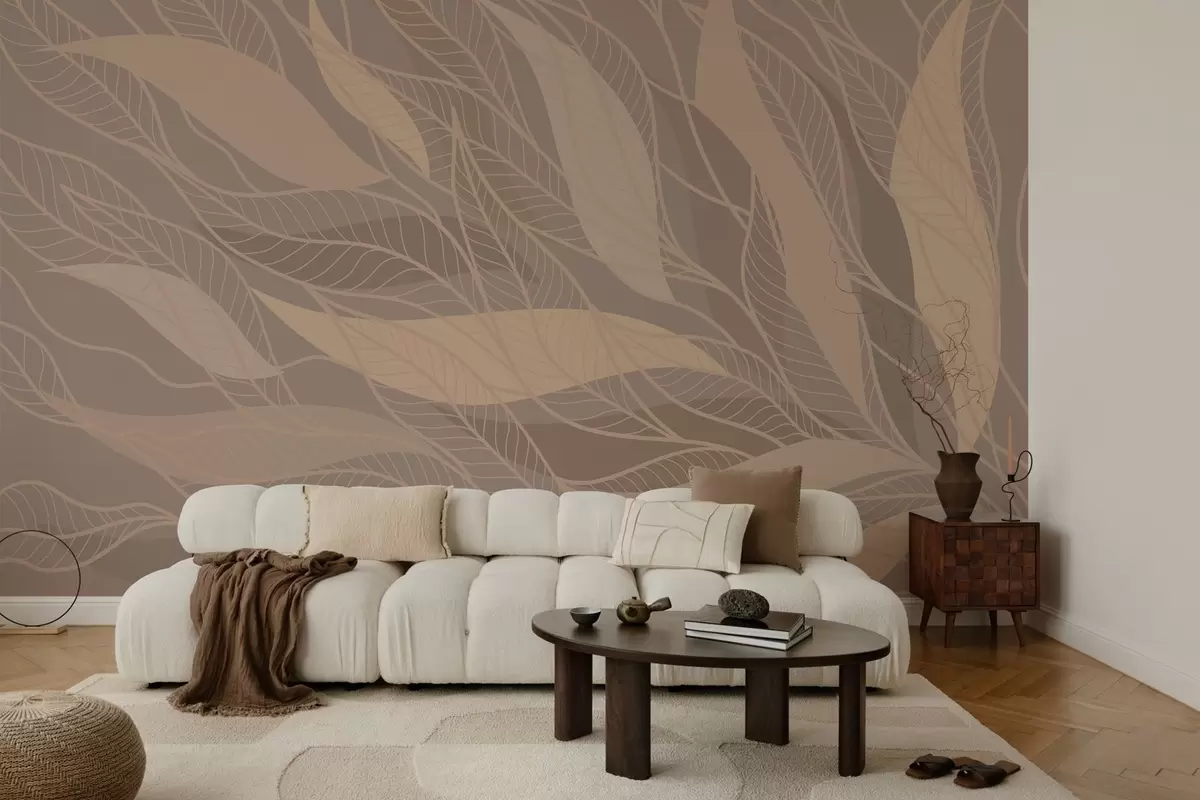 Fototapetes abstraktas lapas bēšā un siltās krāsās Nr. w03117