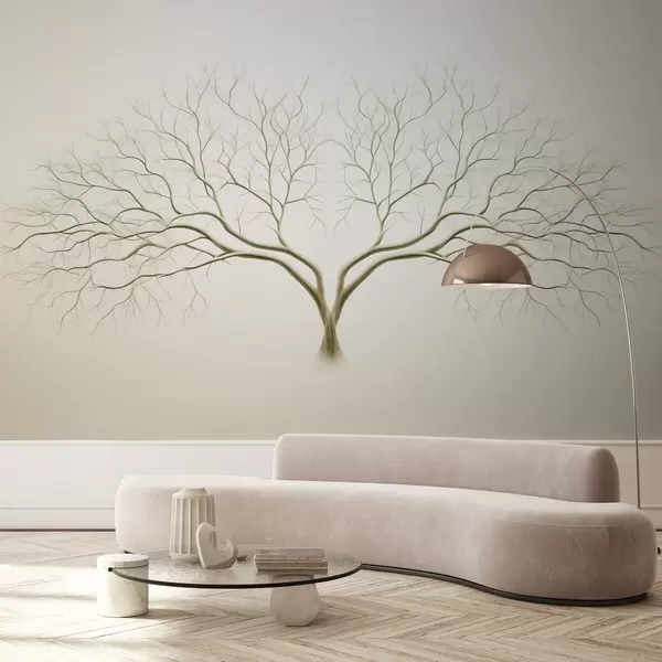 Fototapetes Minimālistisks koka attēls ar smalkiem zariem uz gaiši bēša fona Nr. w03159v2