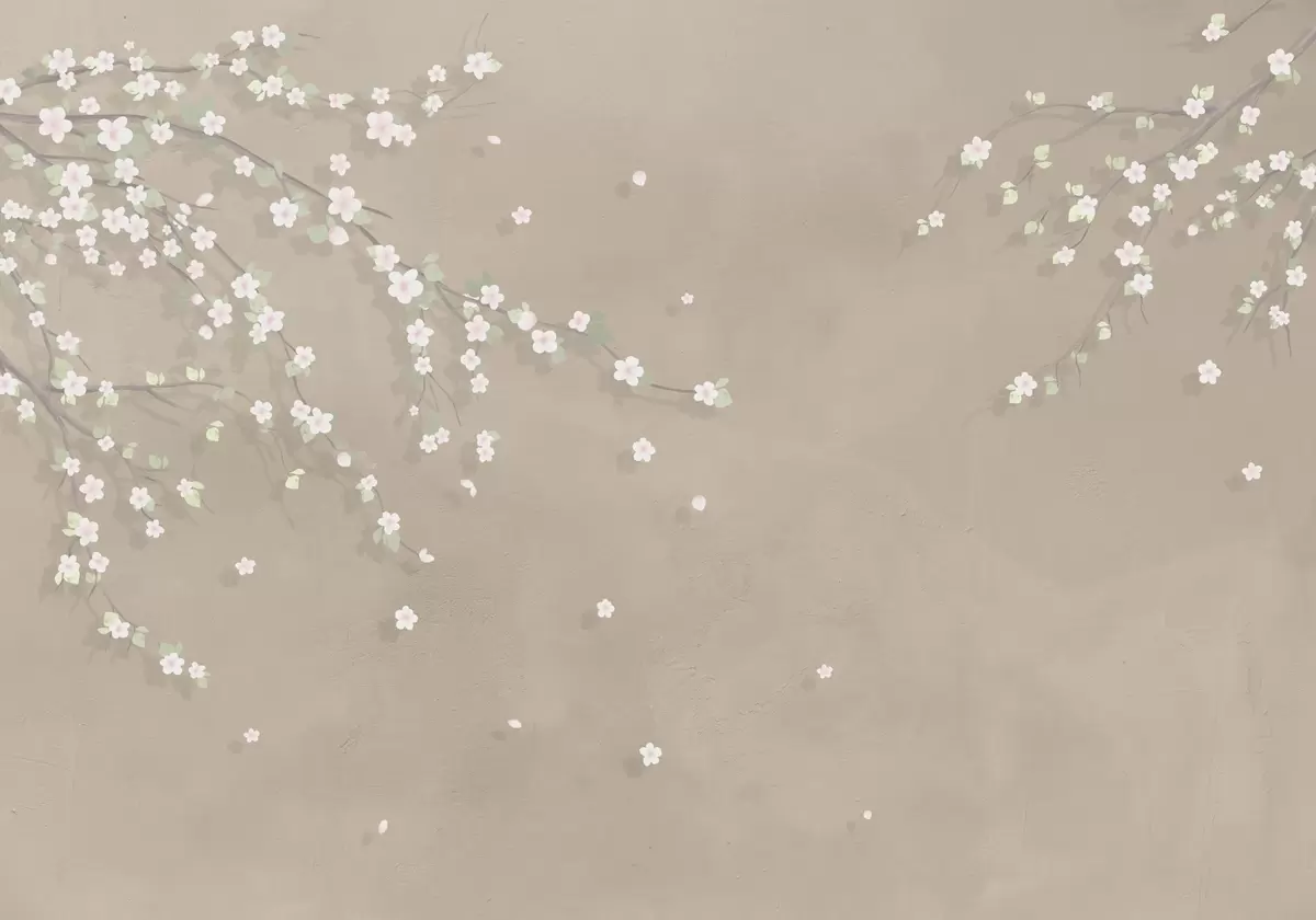 Fototapetes Ziedošs zars uz grunge sienas fona bēšā krāsā Nr. w03393v2