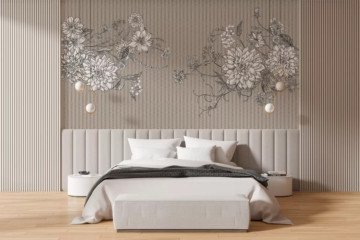 Fototapetes Grafiski ziedi uz matēta fona bēšos toņos Nr. w03395