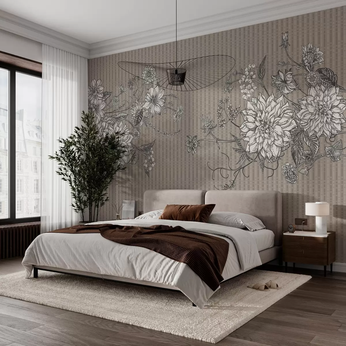 Fototapetes Grafiski ziedi uz matēta fona bēšos toņos Nr. w03395