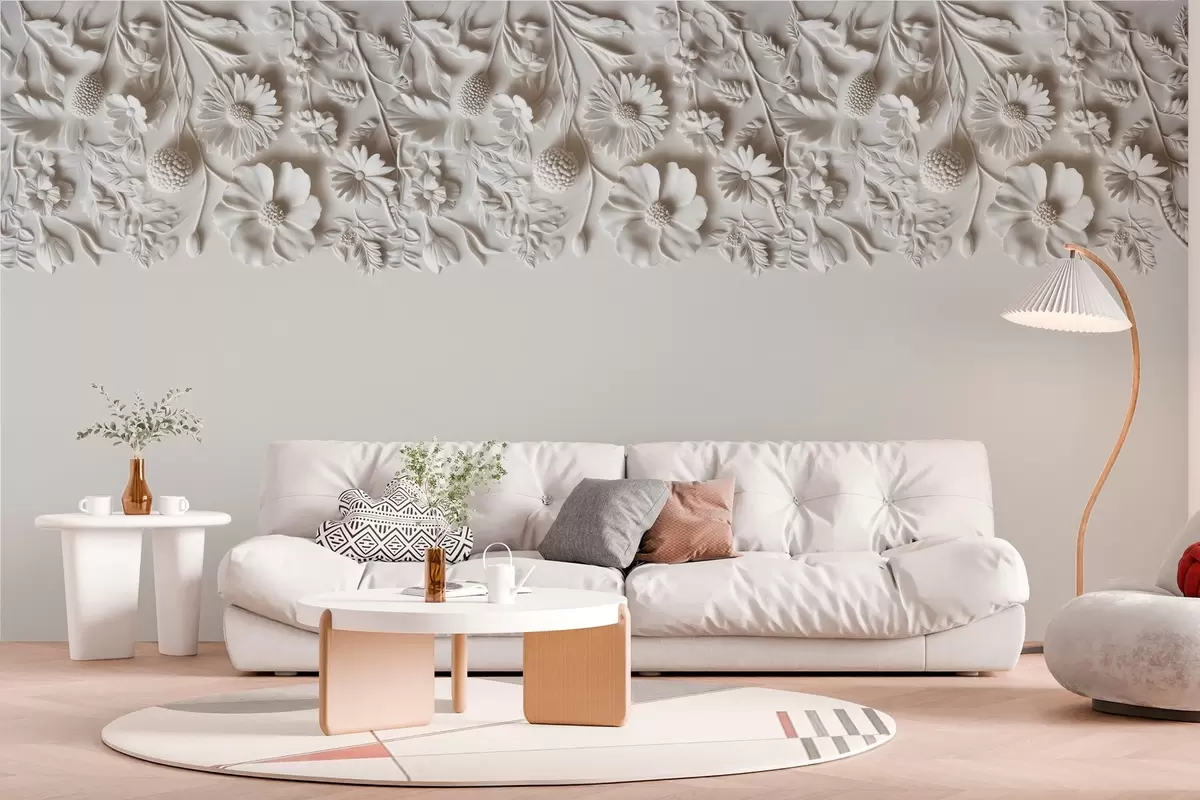 Fototapetes Bazreljefa ziedu imitācija virsū piena krāsā w03398v1