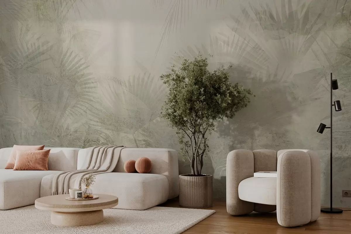 Fototapetes Teksturētas tropu retro tapetes bēšos toņos Nr. w03399