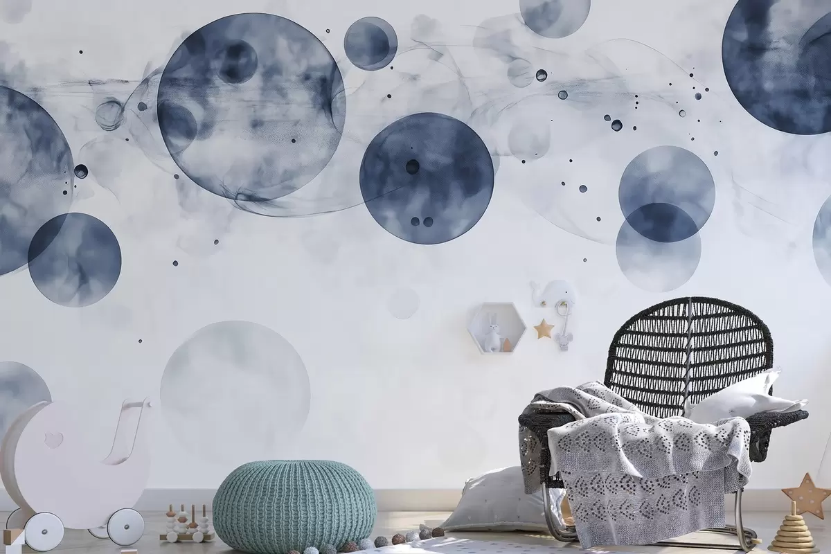 Fototapetes Akvareļu stila apļi, abstrakcija, ēteriskā, šķidruma māksla, pelēkas krāsas Nr. w03405