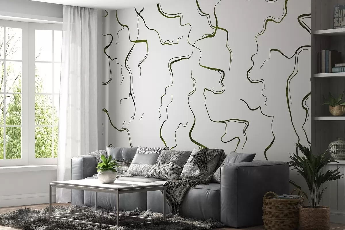 Fototapetes Ģeometriskas līnijas, tintes stils, abstrakcija, zaļas krāsas w03436