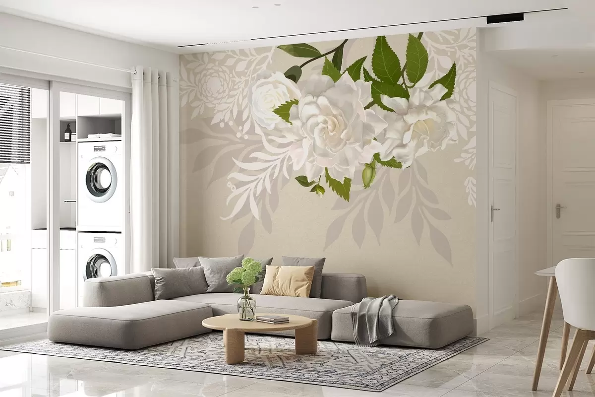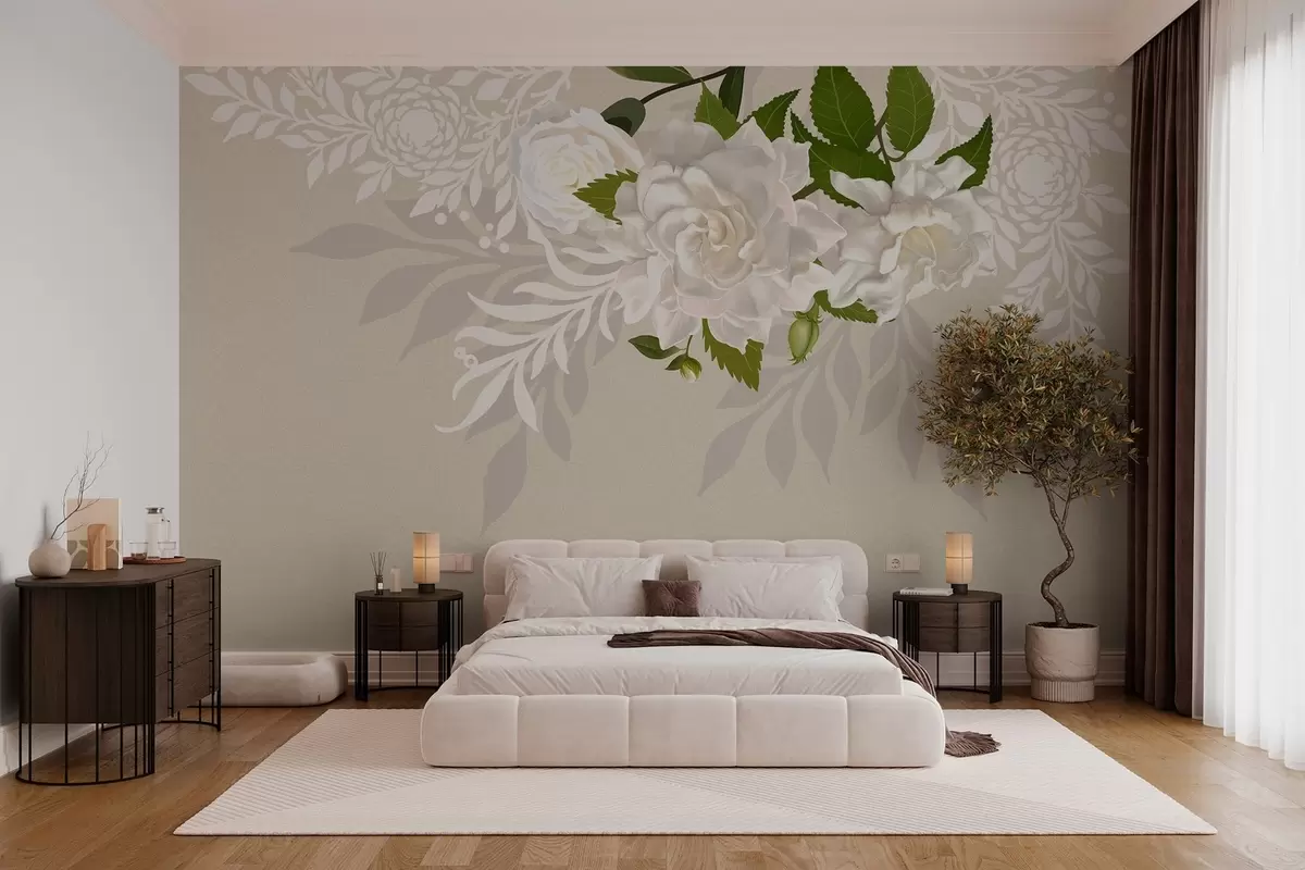 Fototapetes baltas rozes uz bēša rakstaina fona Nr. w03453
