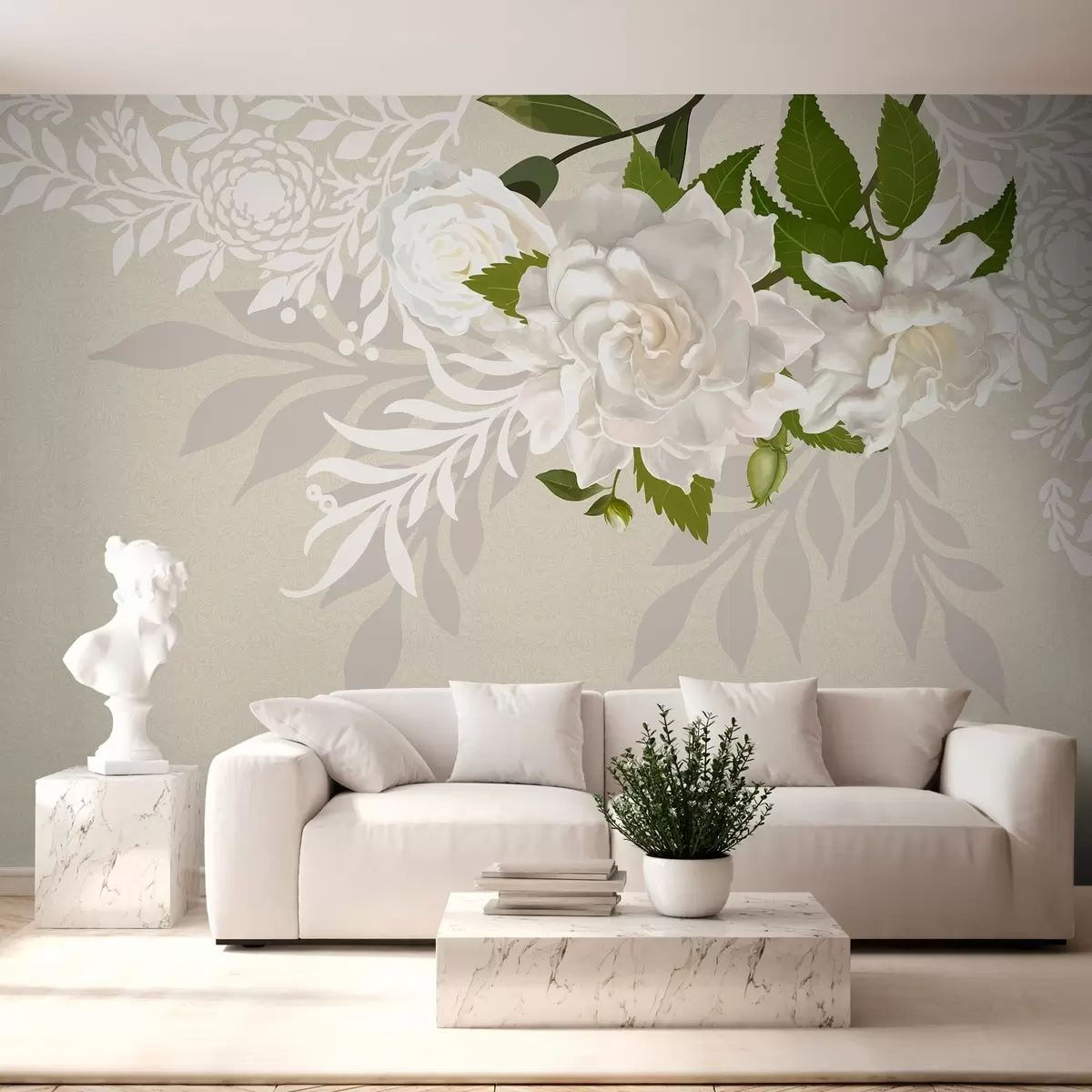 Fototapetes baltas rozes uz bēša rakstaina fona Nr. w03453