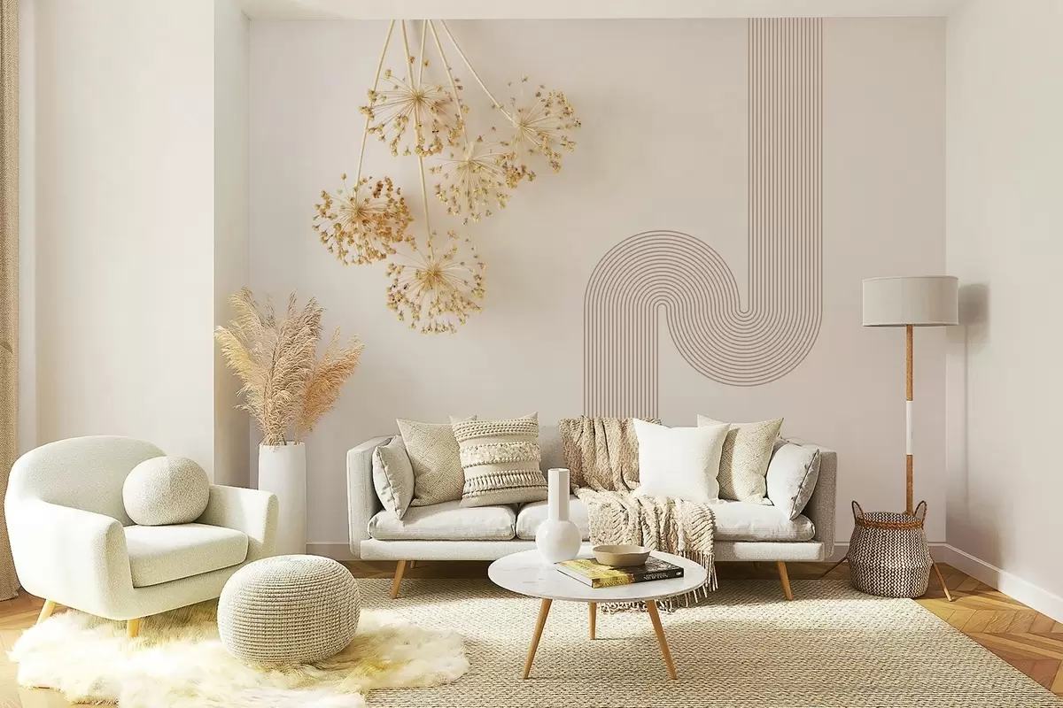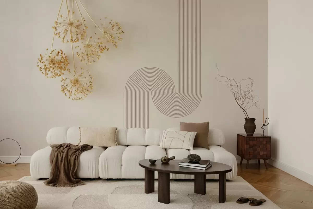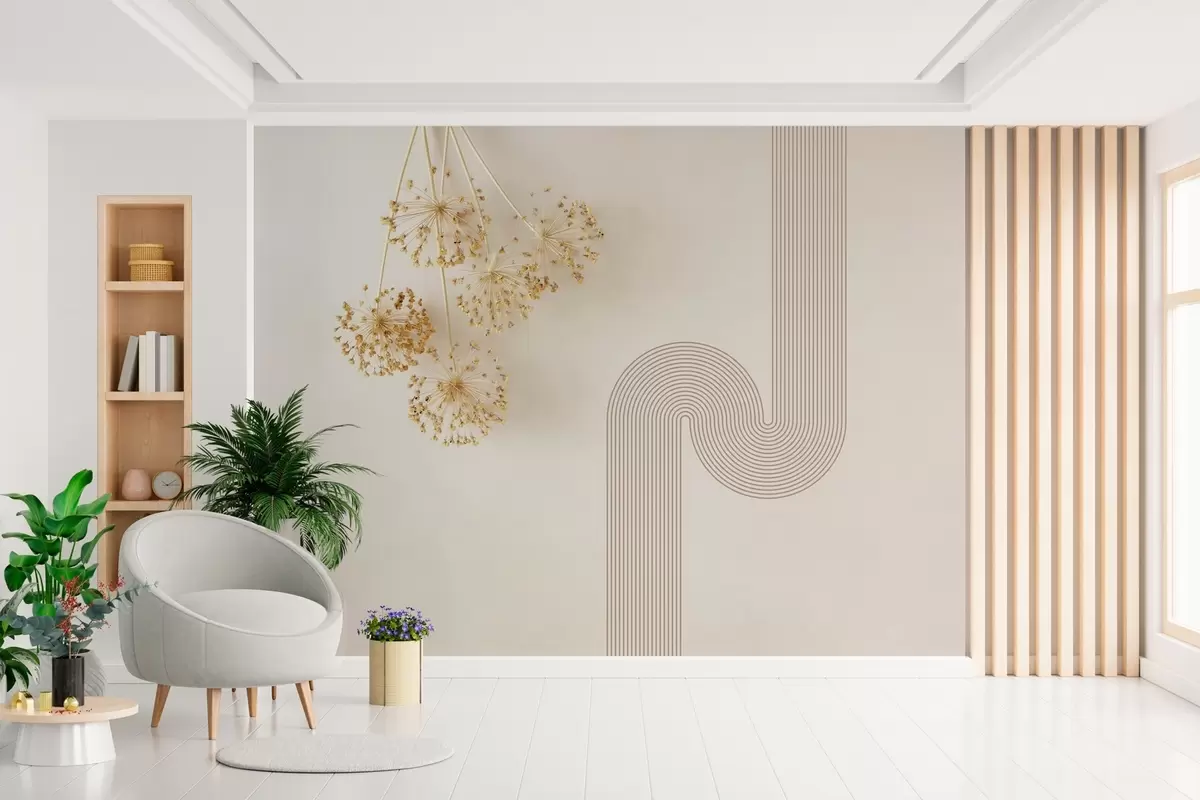 Fototapetes eleganti kaltēti ziedi un līnijas bēšos toņos Nr. w03455