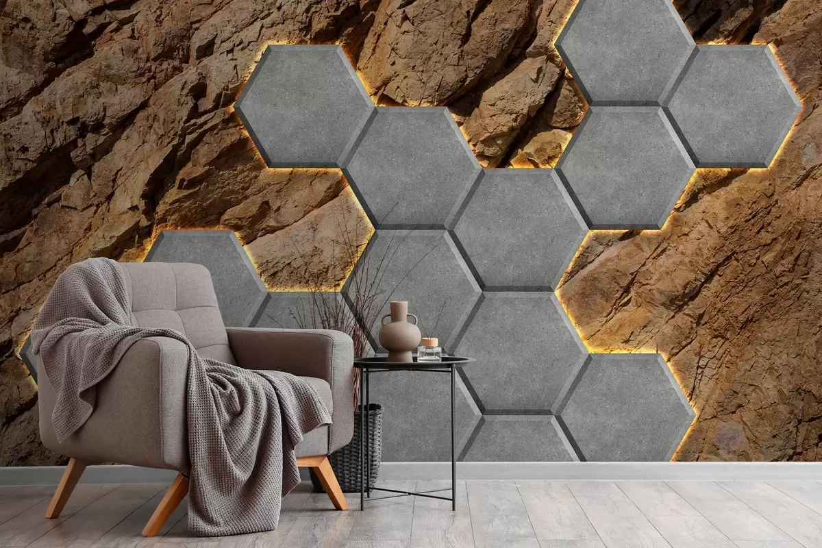 Fototapetes betona ugunsgrēku imitācija uz klinšu fona Nr. w03456