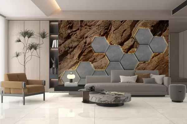 Fototapetes betona ugunsgrēku imitācija uz klinšu fona Nr. w03456