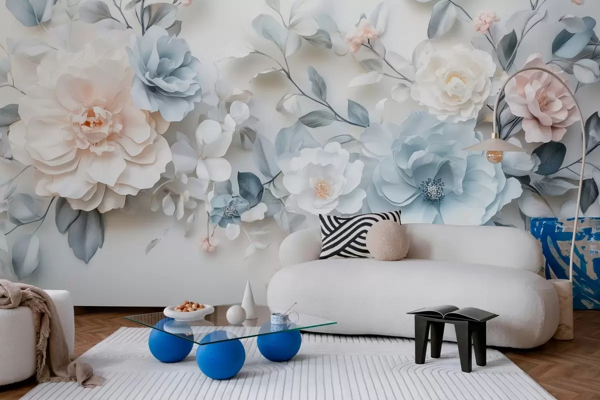 Fototapetes maigi gaisīgi ziedi ar apjoma efektu eļļas glezniecības stilā Nr. w03457