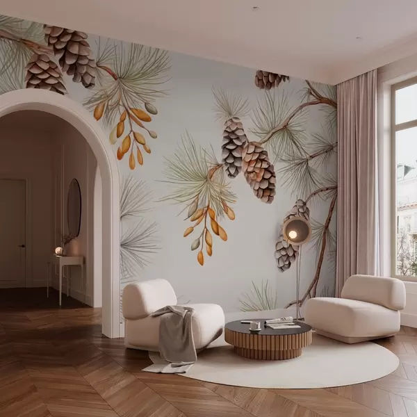 Fototapetes Priežu čiekuri imitācija akvarelis Nr. w03462