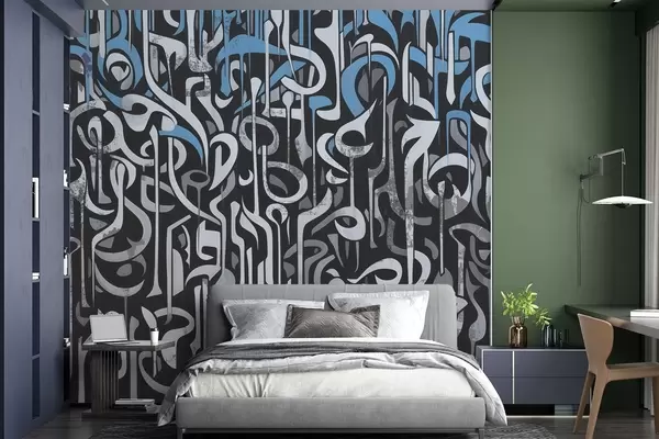 Fototapetes Ielu mākslas dizains ar zilu un pelēku krāsu Nr. w03607v1