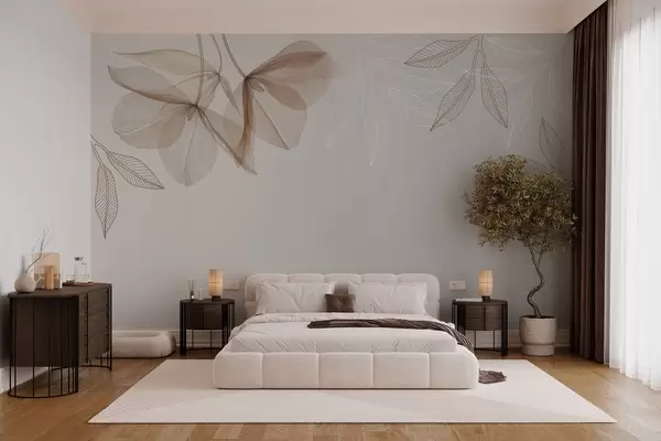 Fototapetes maigi caurspīdīgi ziedi un lapas mokas toņos Nr. w03616v3
