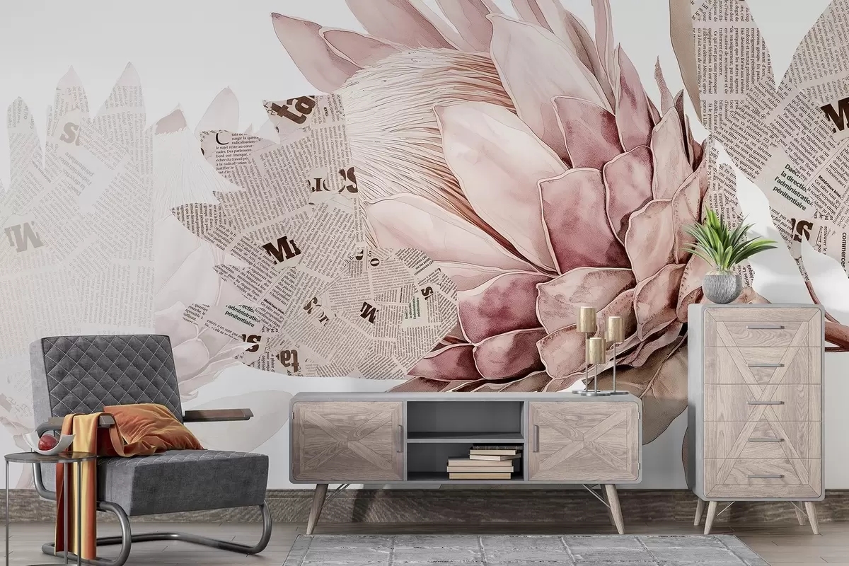 Fototapetes Proteja ziedi, avīžu māksla, ziedu, tropu, pasteļbēšs, pasteļkrāsas bēšs Nr. w03667v4