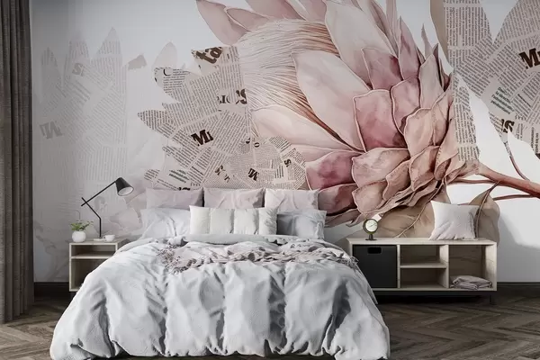 Fototapetes Proteja ziedi, avīžu māksla, ziedu, tropu, pasteļbēšs, pasteļkrāsas bēšs Nr. w03667v4