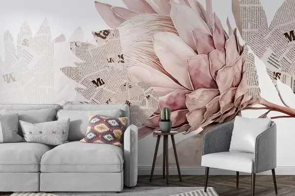 Fototapetes Proteja ziedi, avīžu māksla, ziedu, tropu, pasteļbēšs, pasteļkrāsas bēšs Nr. w03667v4