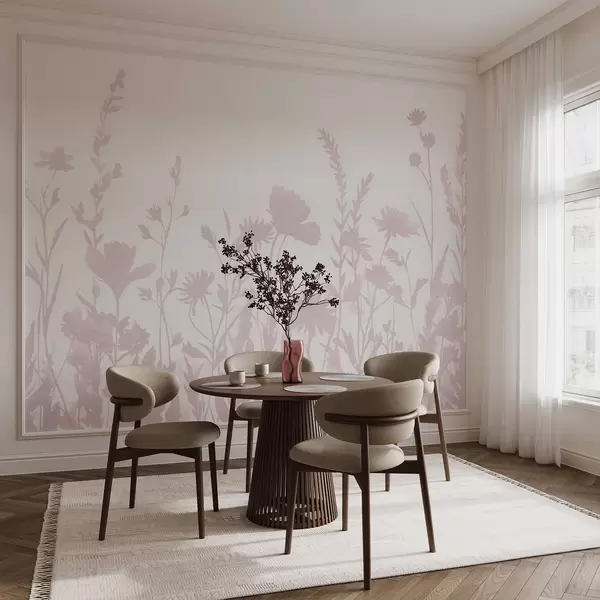 Fototapetes Vasaras pļava, lauku, ziedi, rozā krāsu palete Nr. w03670v2