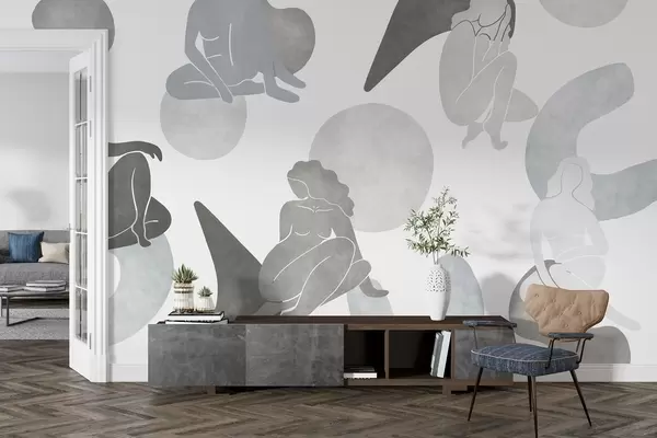 Fototapetes Ģeometriskas abstrakcijas ar sieviešu siluetiem, boho stils, pelēkas krāsas Nr. w03753v5