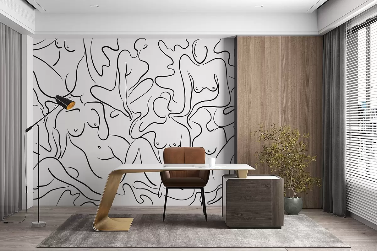Fototapetes Sieviešu ķermeņu siluetu zīmējums, abstrakcija, melna krāsa Nr. w03755