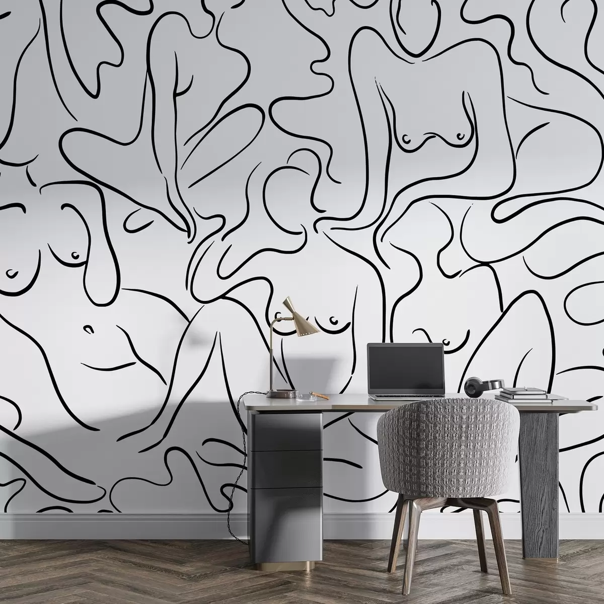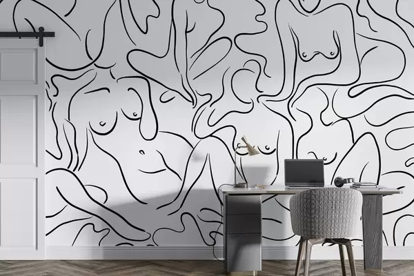 Fototapetes Sieviešu ķermeņu siluetu zīmējums, abstrakcija, melna krāsa Nr. w03755