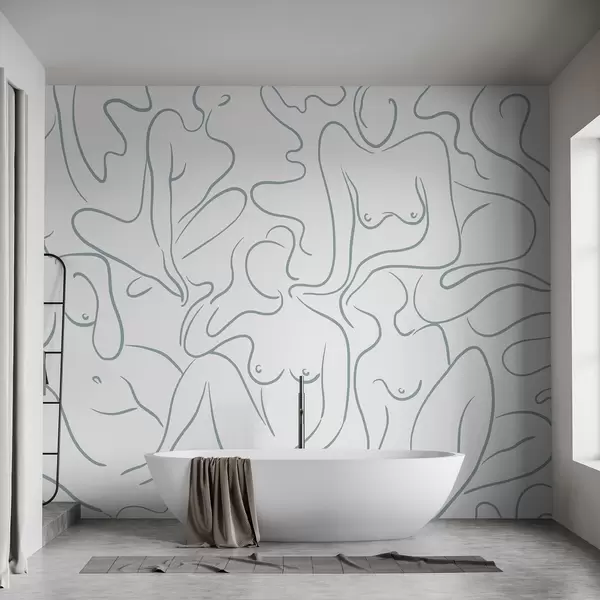 Fototapetes Line zīmējums anatomiski silueti, abstrakcija, zila krāsa Nr. w03755v1