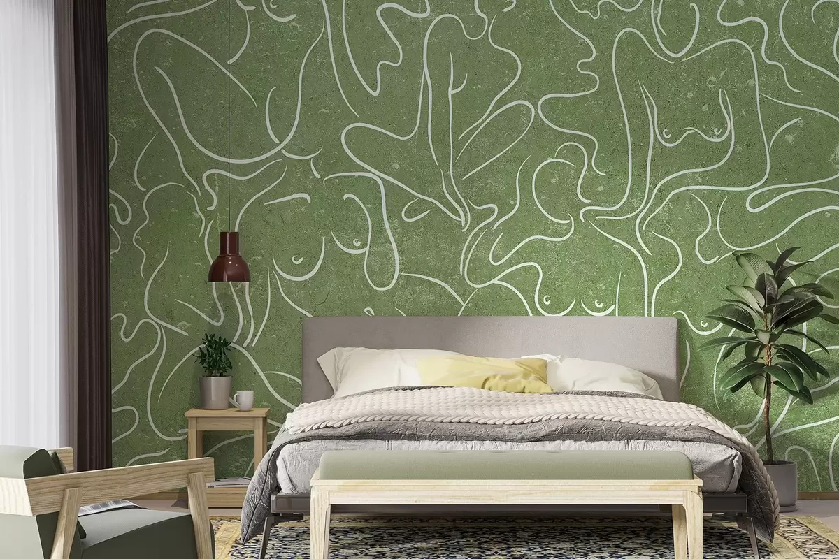Fototapetes Line zīmējums anatomiski silueti, abstrakcija, zaļš fons Nr. w03756v2
