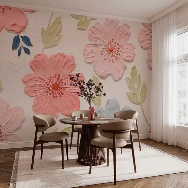 Fototapetes Reljefa ziedi bareljefa stilā ar rozā toņiem Nr. w03797