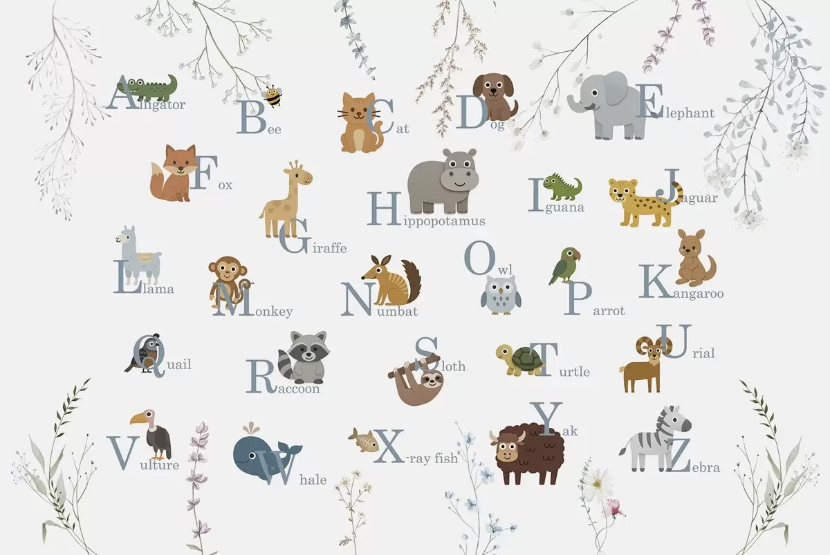 Fototapetes Minimālisma alfabēts ar ziliem burtiem Nr. w03808