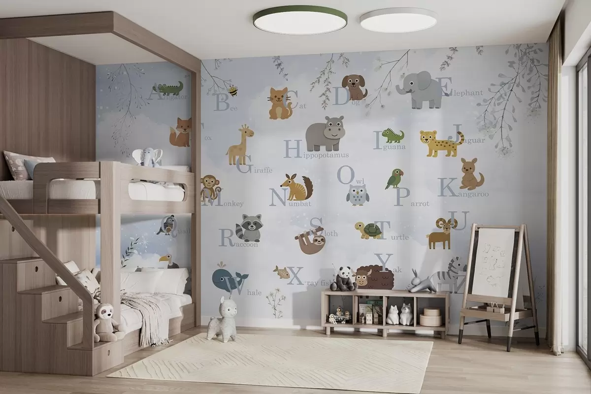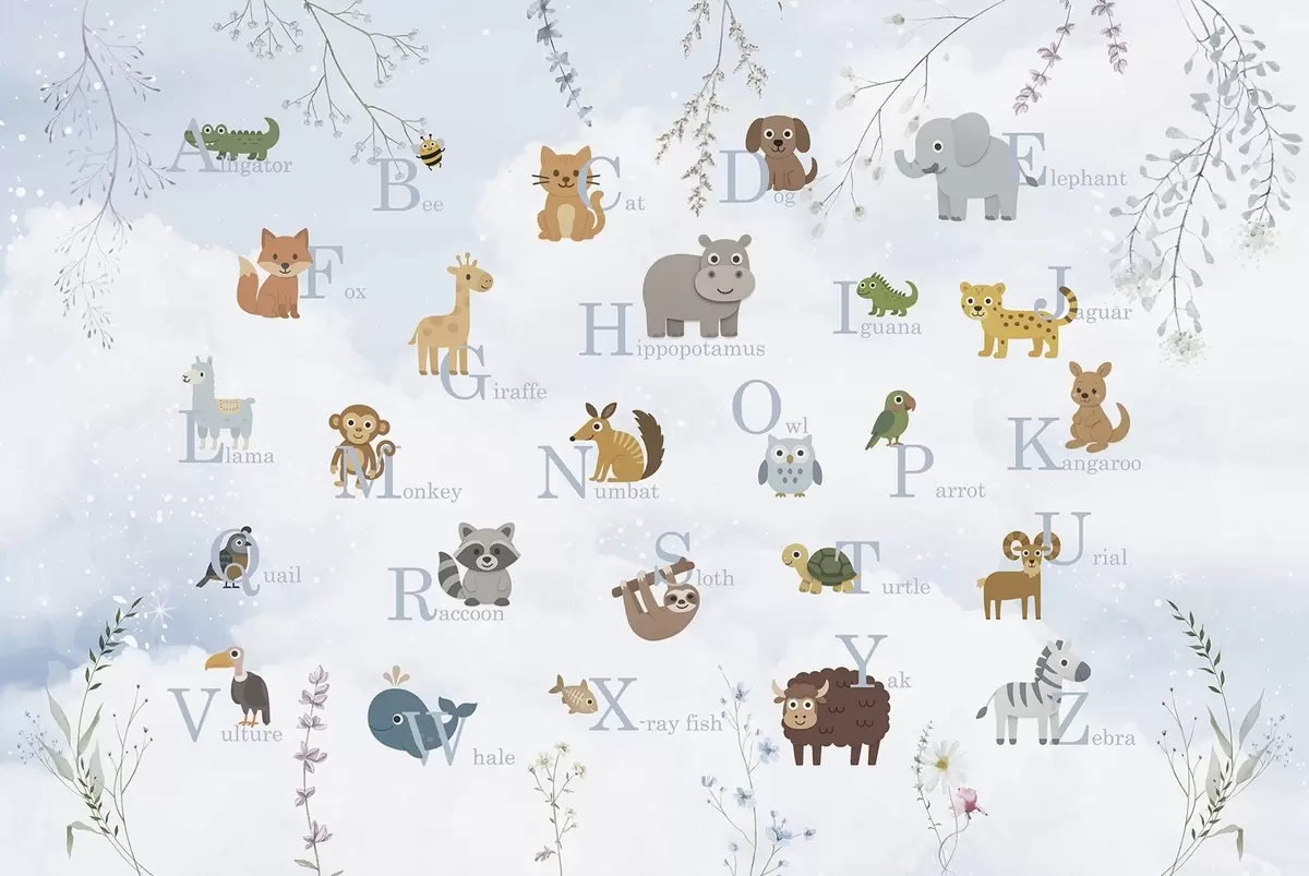 Fototapetes Alfabēts ar ziliem burtiem, augiem un debesīm Nr. w03809v1