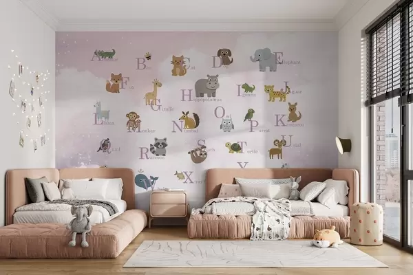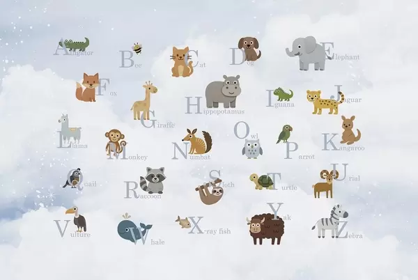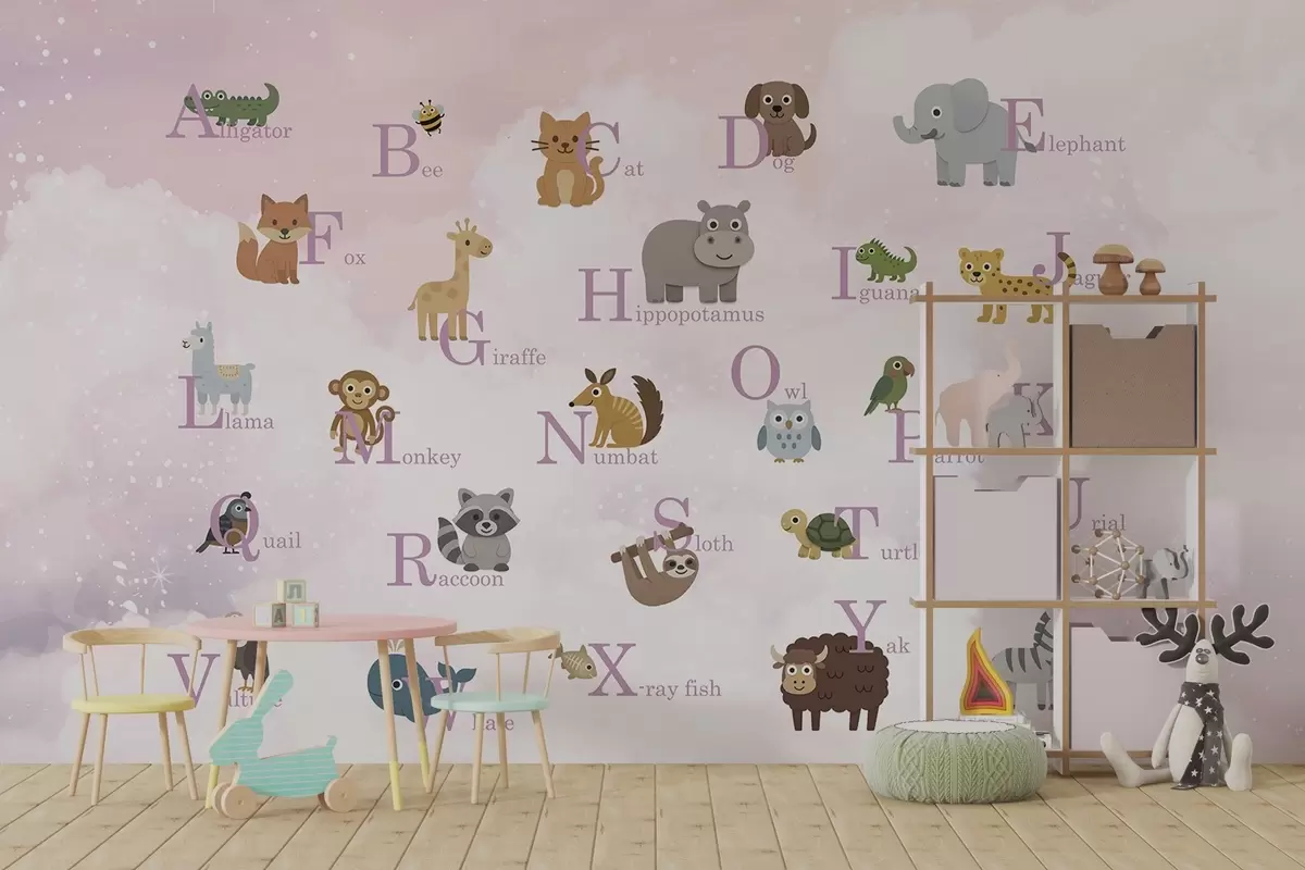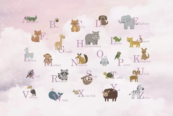 Fototapetes Alfabēts ar rozā burtiem uz debesu fona Nr. w03810