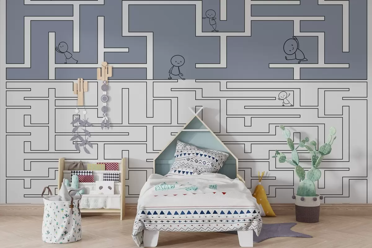 Fototapetes Labirints zilā un baltā krāsā Nr. w03873v2