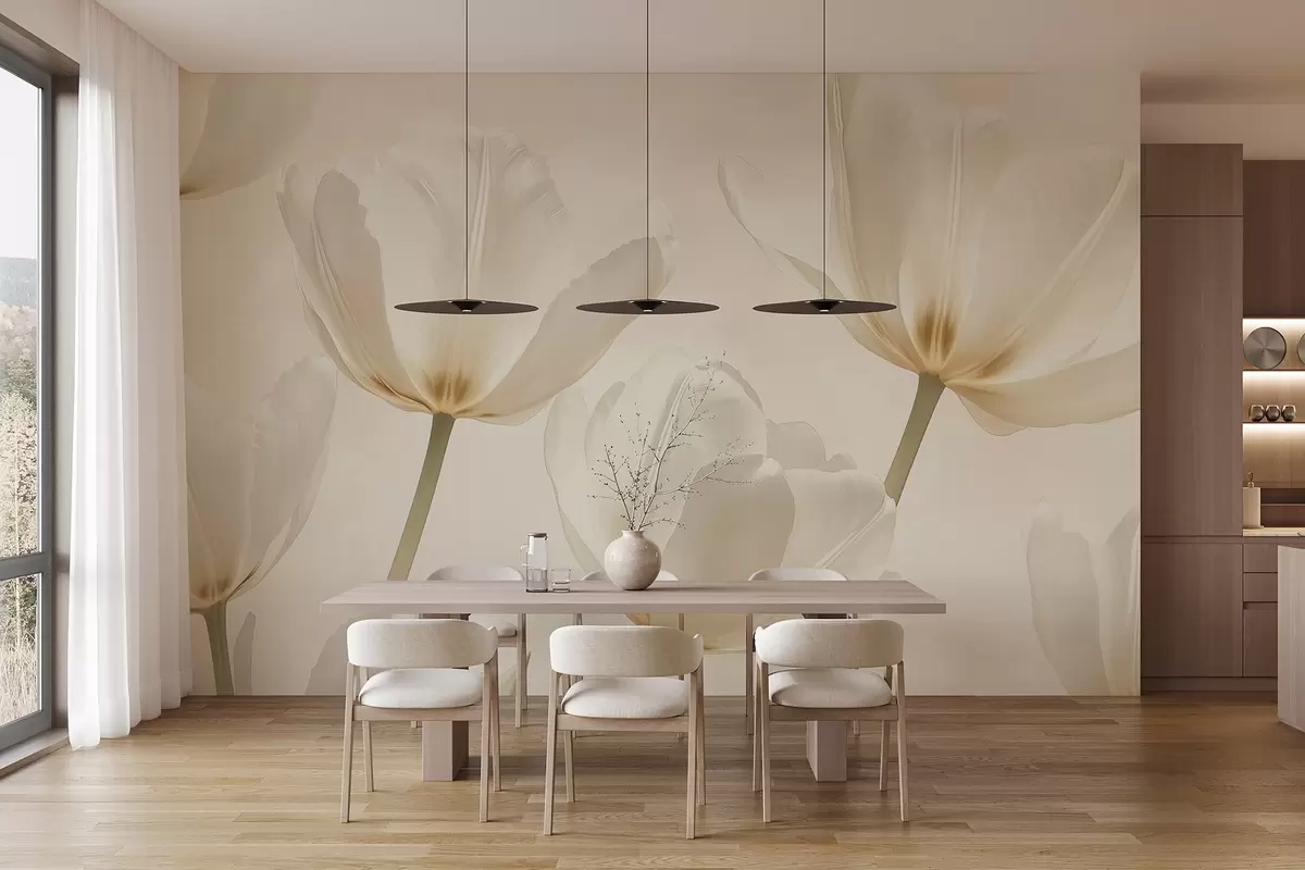 Fototapetes Skaistas tulpes, ziedu, bēšas krāsas, reālisms Nr. w03877