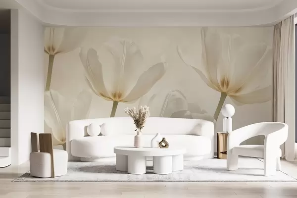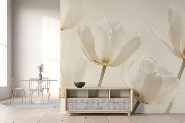 Fototapetes Skaistas tulpes, ziedu, bēšas krāsas, reālisms Nr. w03877