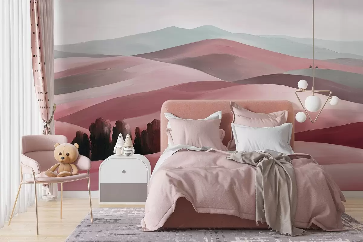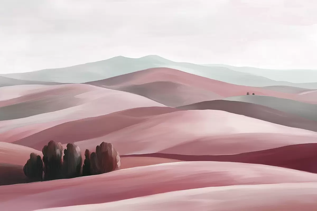 Fototapetes Ainavas ar kokiem, Toskāna, rozā krāsas, eļļas stils Nr. w03880v2