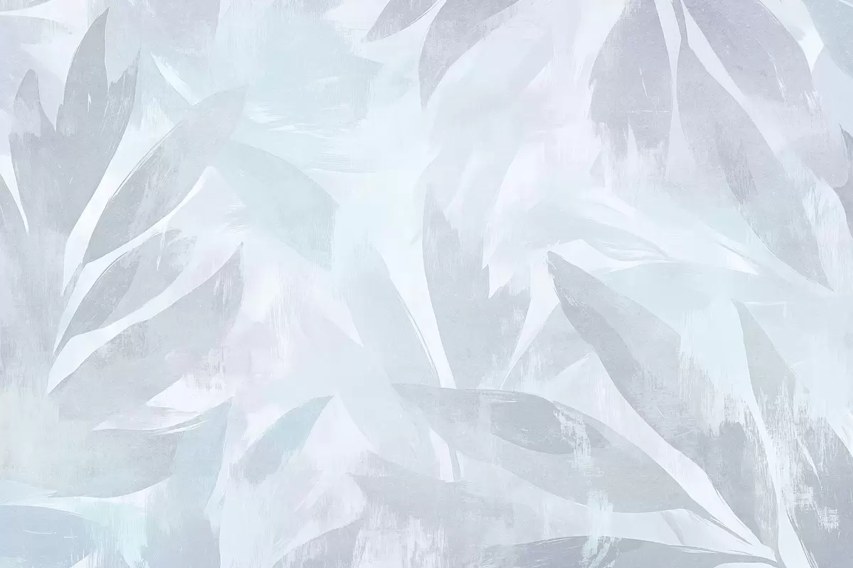 Fototapetes Tropu lapas, ziedu, palmas, pasteļstils, zilas krāsas Nr. w03881v2