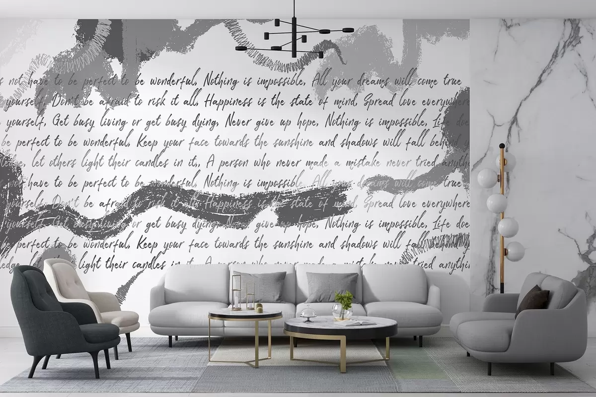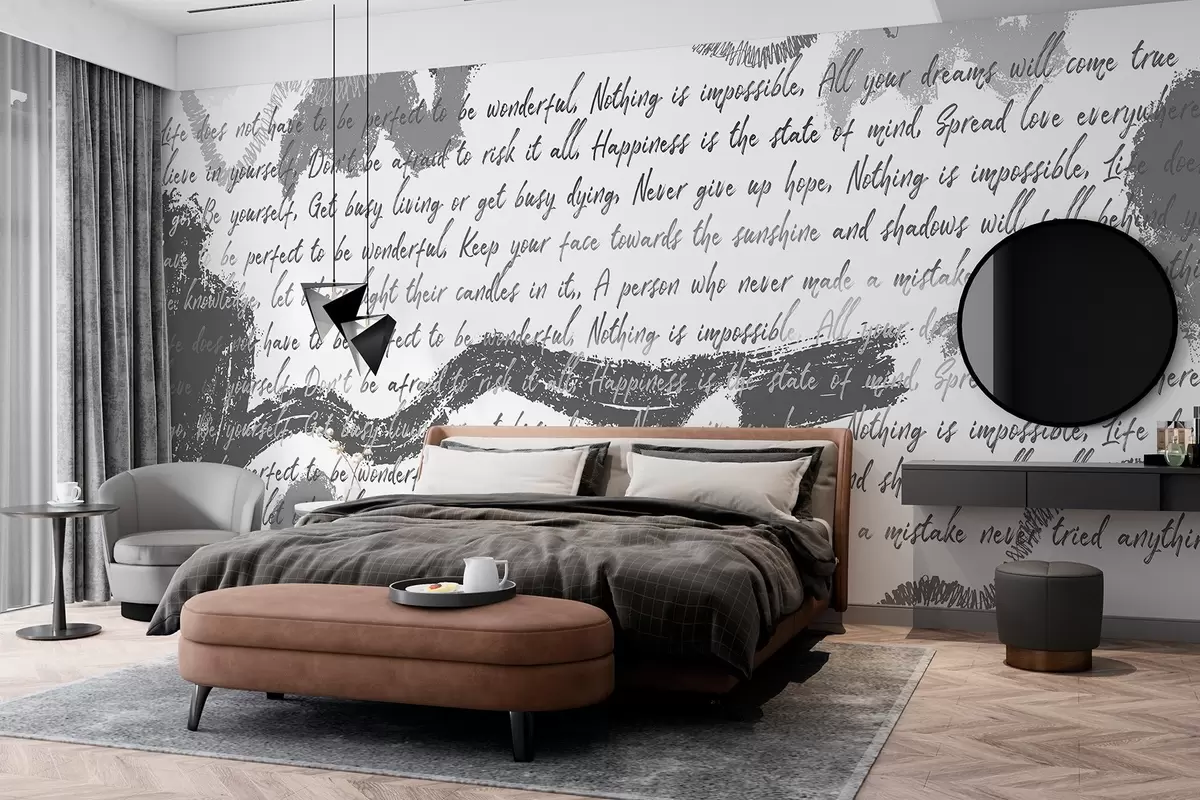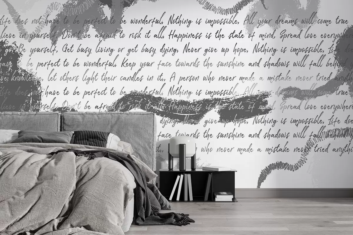 Fototapetes Dizains ar iedvesmojošiem citātiem, abstrakcija, pelēkas krāsas Nr. w03909v4