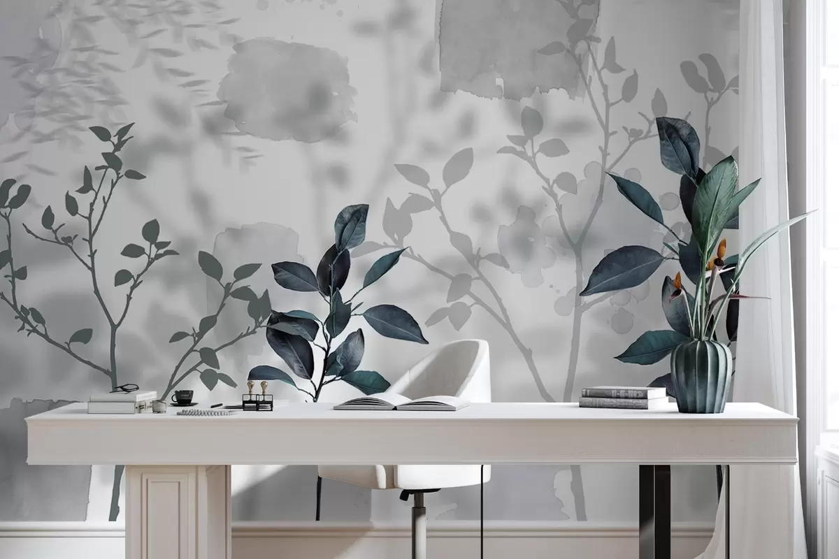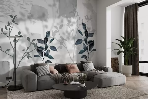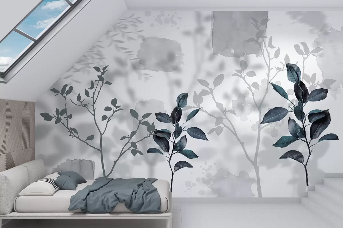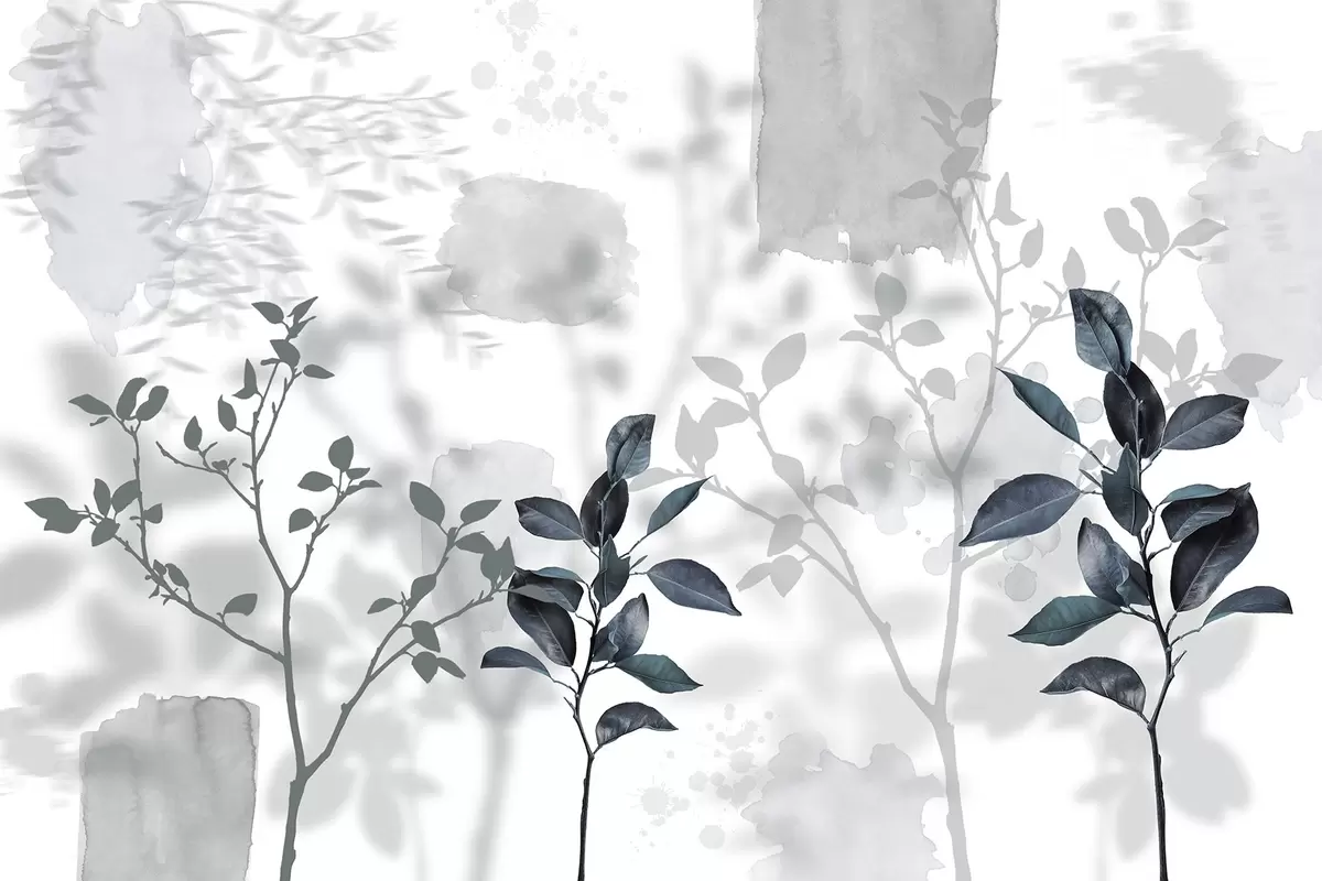 Fototapetes Citronkoka lapas, koku zaru ēnas, daba, akvarelis, zils Nr. w03910v2
