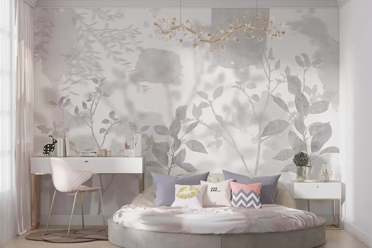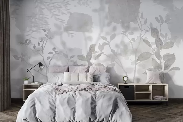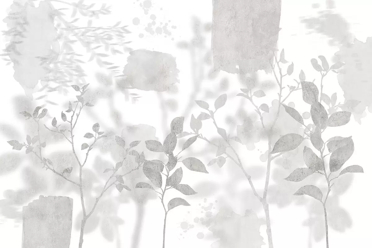 Fototapetes Koku silueti, zari, daba, akvarelis, pelēkas krāsas Nr. w03911