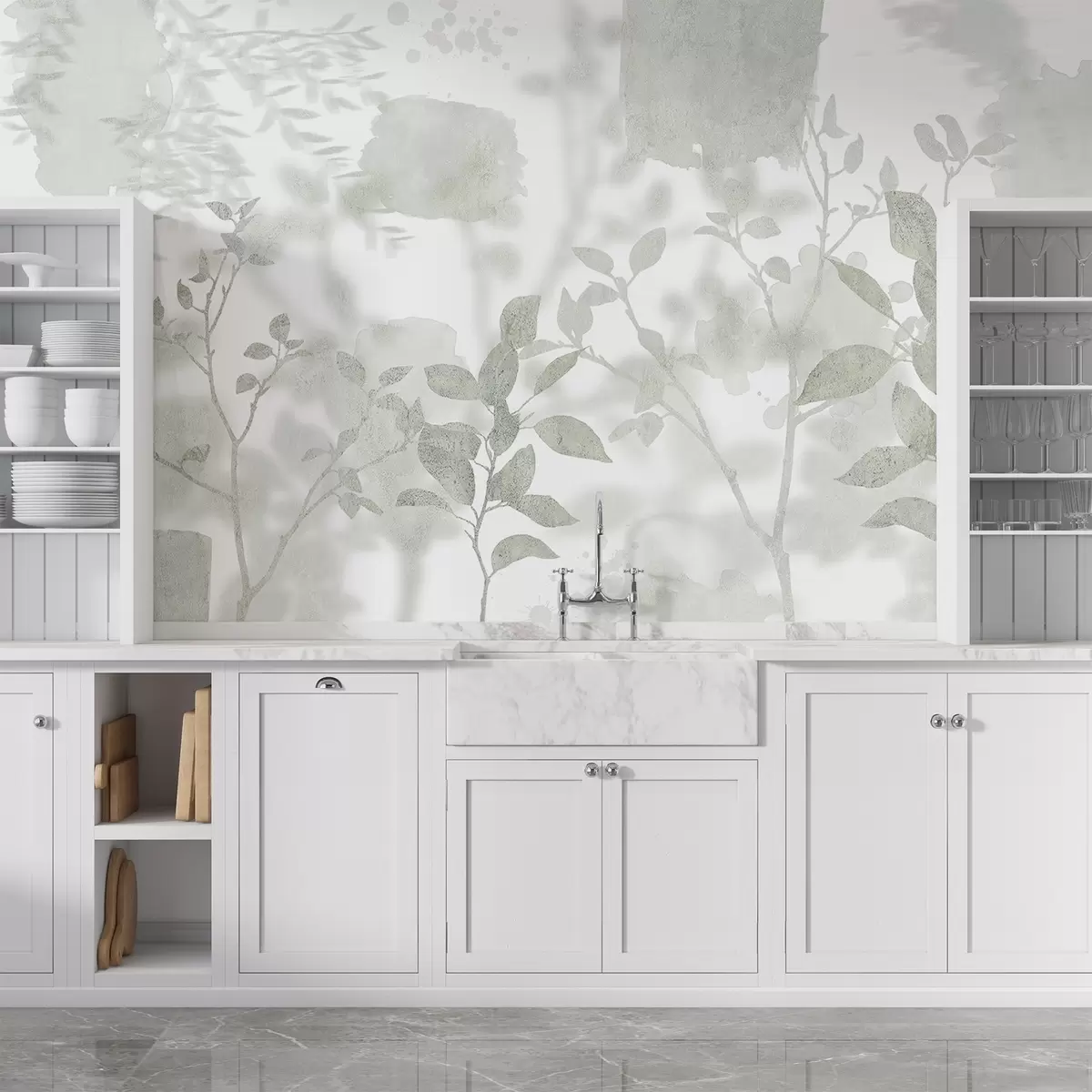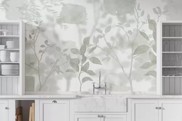 Fototapetes Koku silueti, zari, daba, akvarelis, zaļas krāsas Nr. w03911v1