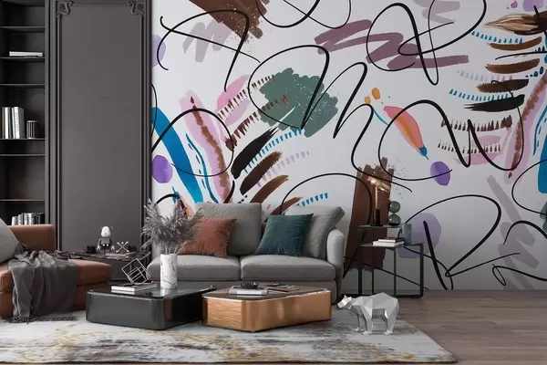 Fototapetes Tintes burti, kaligrāfija, otas triepieni, spilgtas krāsas, abstrakcija Nr. w03912