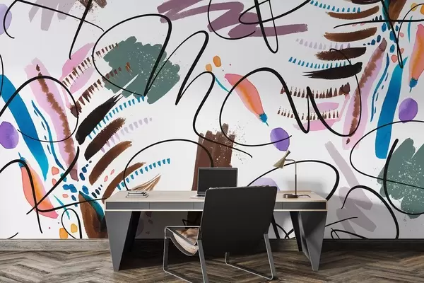 Fototapetes Tintes burti, kaligrāfija, otas triepieni, spilgtas krāsas, abstrakcija Nr. w03912