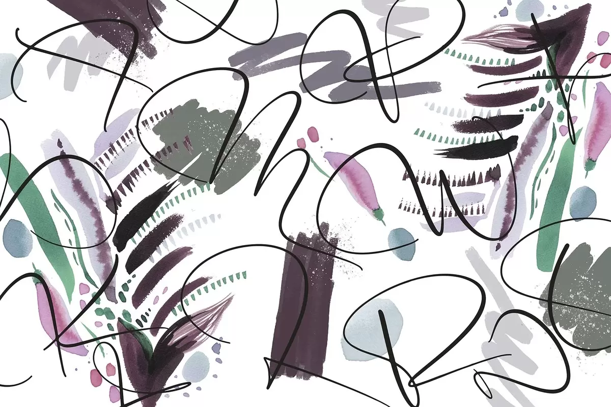 Fototapetes Tintes burti, kaligrāfija, otas triepieni, pasteļtoņi, abstrakcija Nr. w03912v1