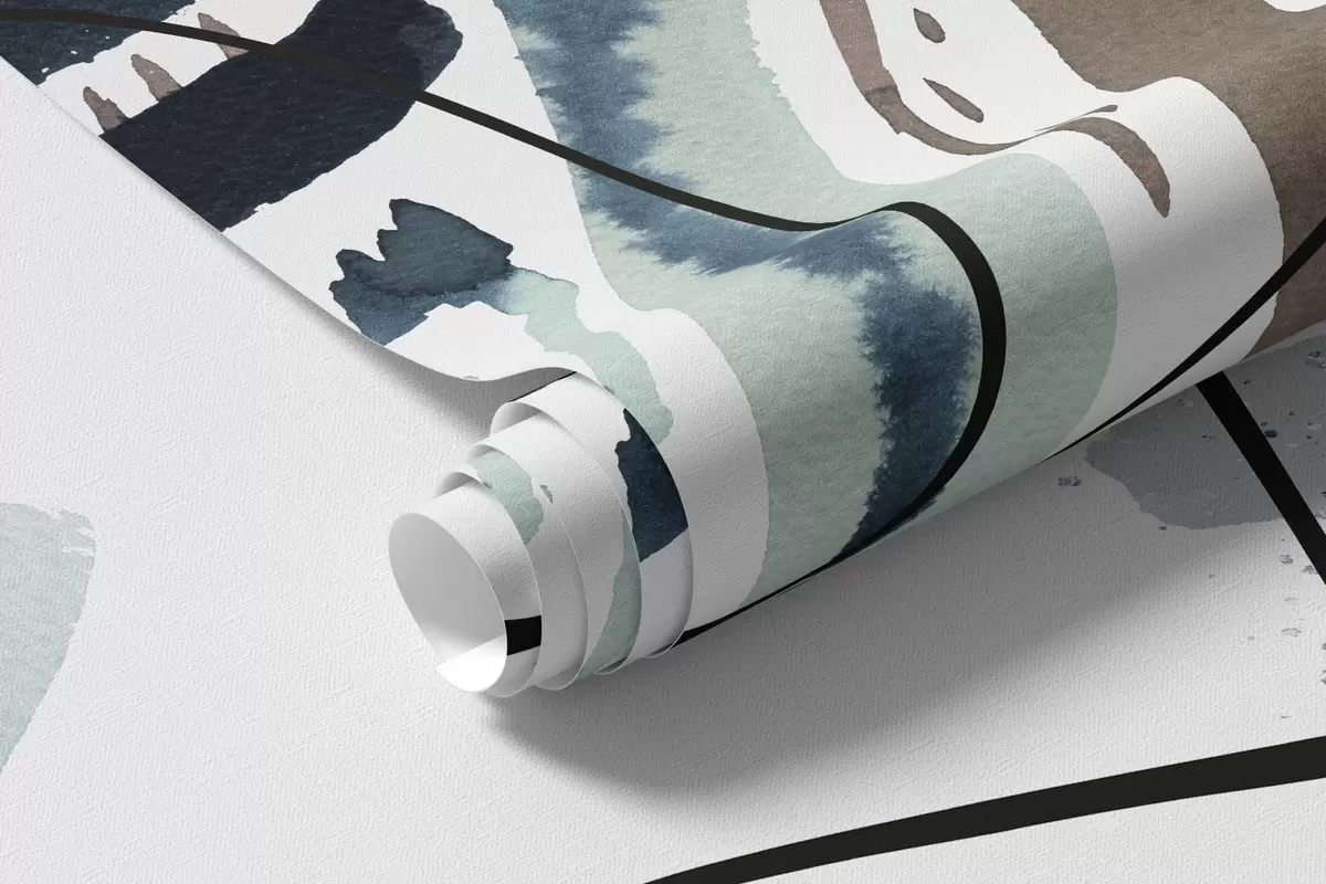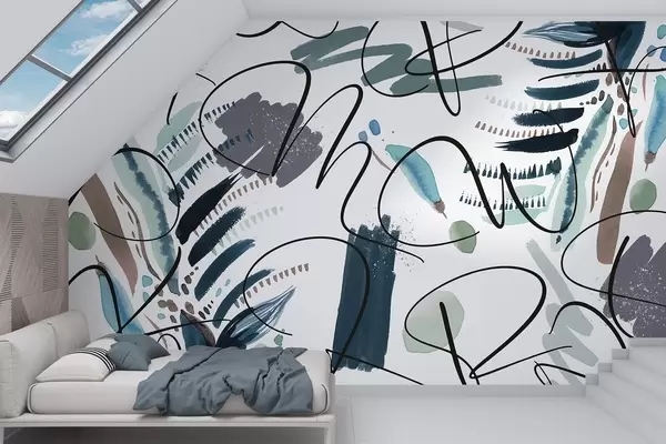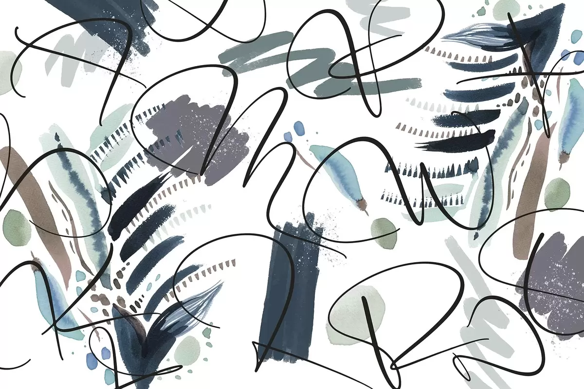 Fototapetes Tintes burti, kaligrāfija, otas triepieni, zilas krāsas, abstrakcija Nr. w03912v2