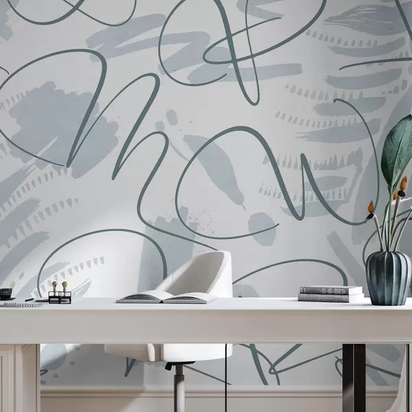Fototapetes Kaligrāfiska abstrakcija ar burtiem, otas triepieniem, zilu krāsu Nr. w03913v1