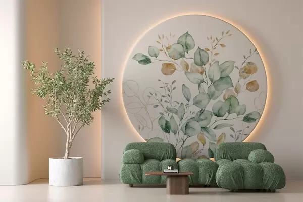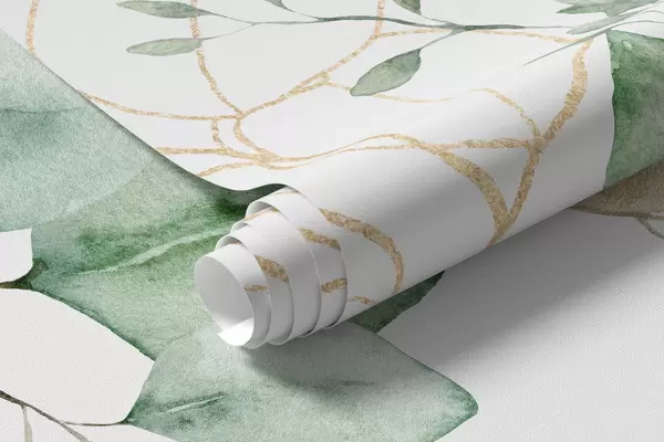 Fototapetes Augu un zaru faktūras imitācija, akvarelis, zaļi un dzelteni toņi Nr. w03927