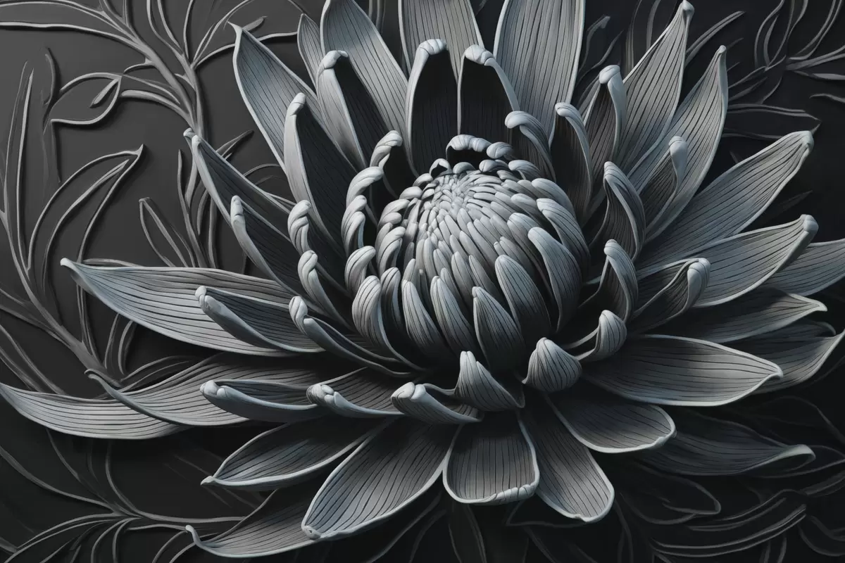 Fototapetes Protea ziedu, zilā un melnā krāsā Nr. w03930v2
