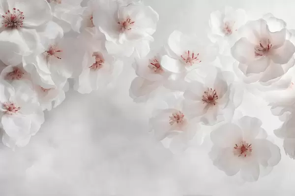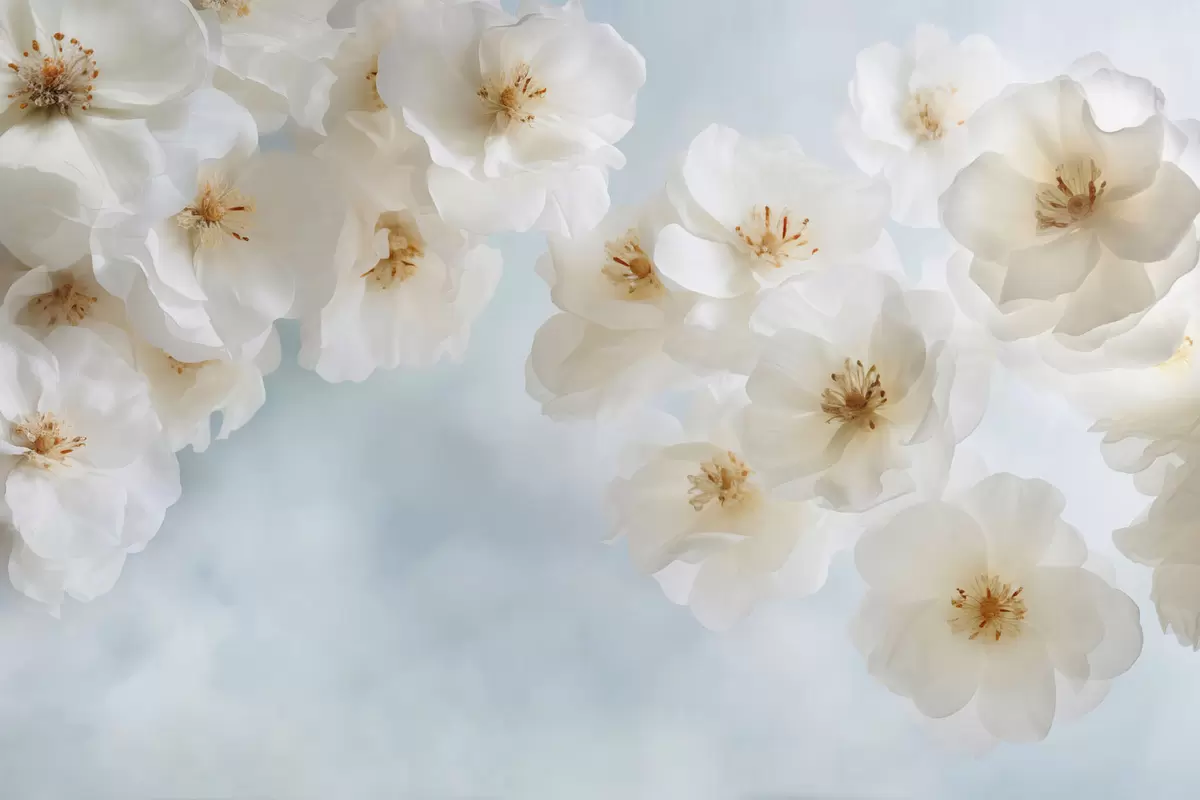 Fototapetes Smalki lieli ziedi uz gaiši zila fona Nr. w03931v1