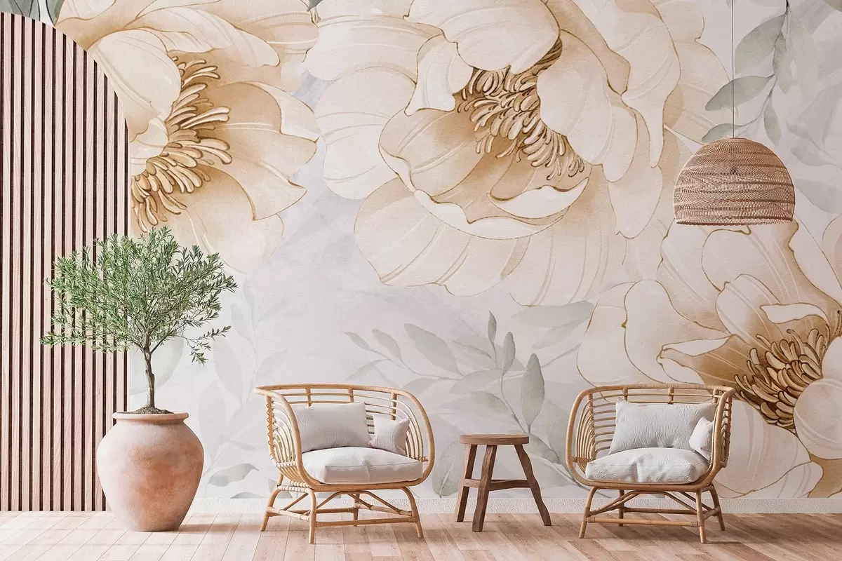 Fototapetes Dzelteno peoniju imitācija akvarelis Nr. w03932v1