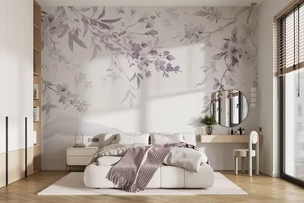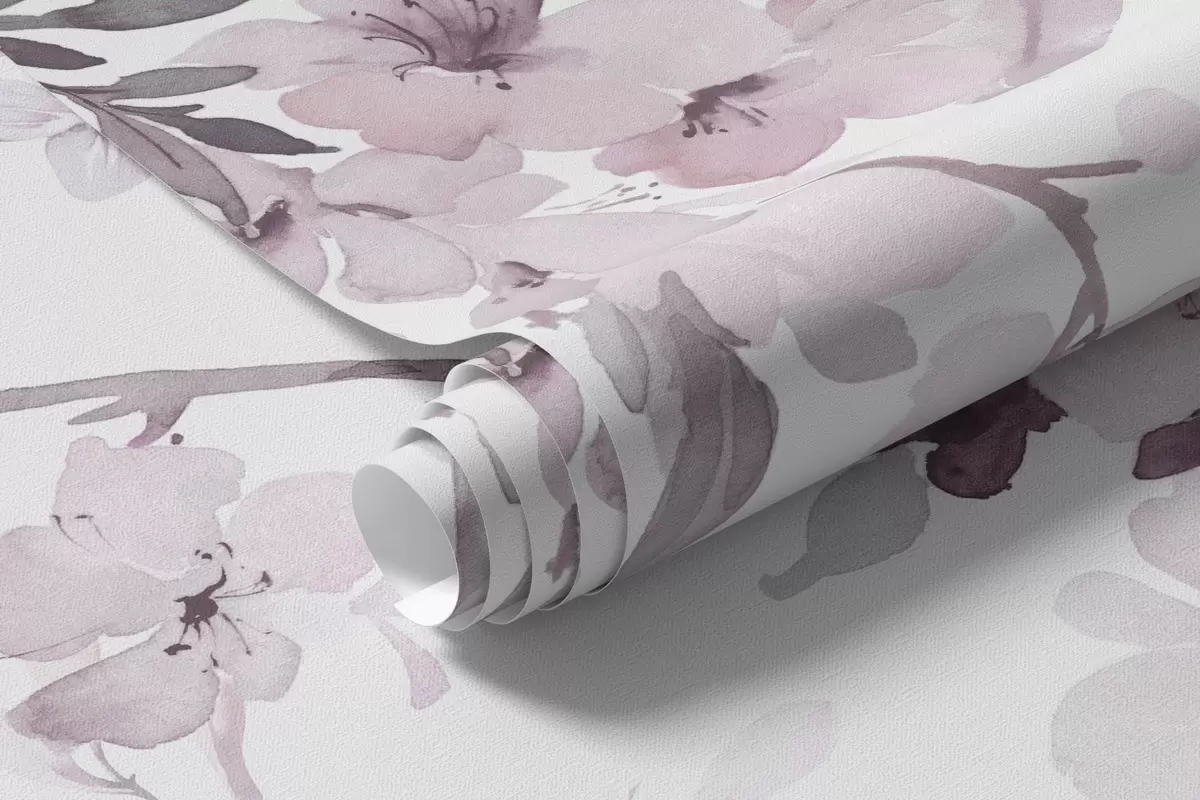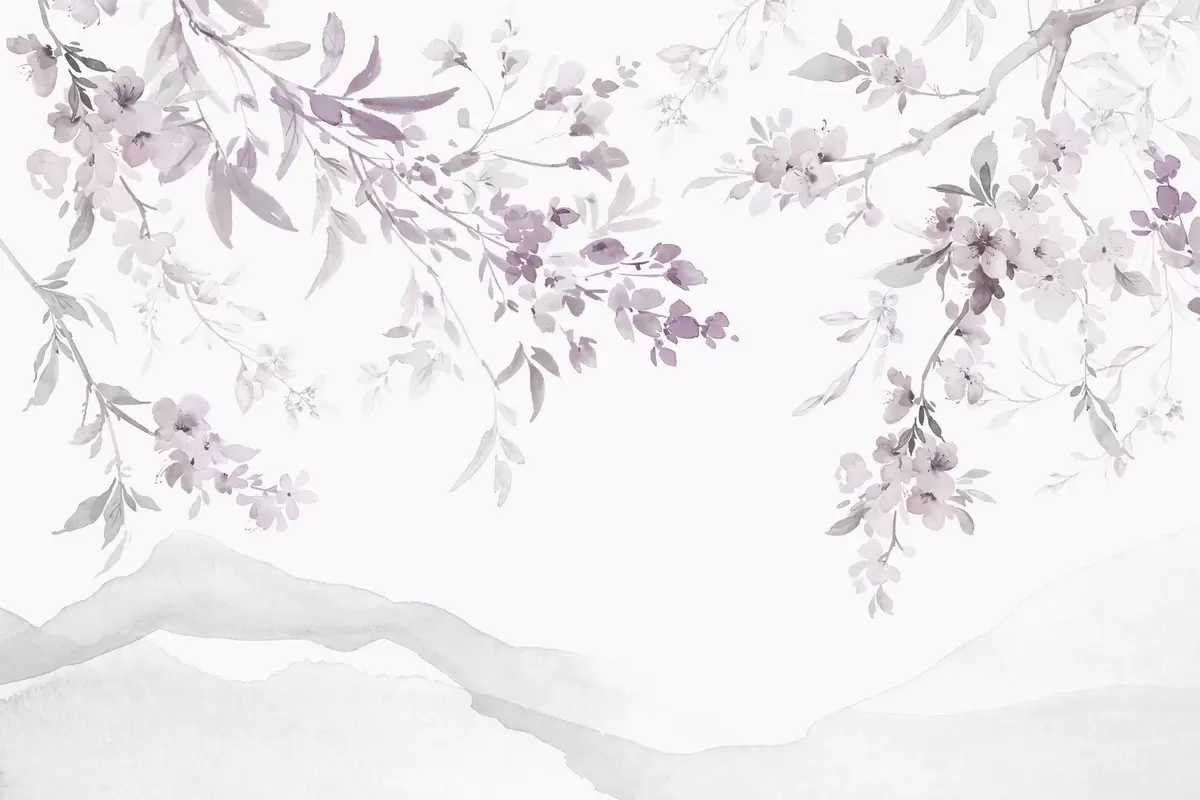 Fototapetes Ziedēšanas zari, akvareļu imitācija, violeti rozā toņos Nr. w03935v1